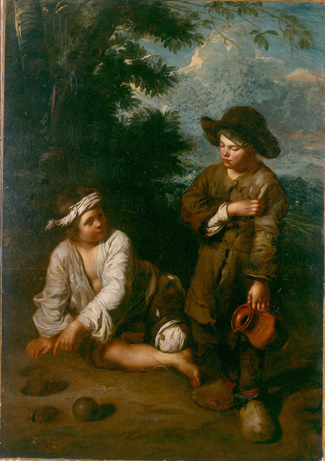 Pedro Nunez de Villavicencio compte parmi les membres fondateurs de l'Académie de dessin de Séville en 1660. L'amitié avec Esteban Murillo suffit à expliquer son attrait pour la scène de genre enfantine. En fait, ce thème fut peu imité par les autres peintres espagnols, mais très apprécié notamment dans les Flandres. Le tableau présente deux enfants dans un paysage champêtre. Le premier, tête nue, débraillé, à terre, paraît inviter le second à jouer aux boules en sa compagnie. Celui-ci, chapeauté, chaussé de sabot, même si modestement vêtu, contemple les boules étalées devant lui. Il tient à la main un pichet. Certainement envoyé aux commissions, il vient d'être arrêté par l'invitation et paraît hésiter à continuer son chemin.
