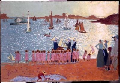 Peintre et théoricien du groupe symboliste des Nabis qui revendiquait une peinture décorative dans la voie tracée par Paul Gauguin (1848-1903), Maurice Denis est resté célèbre par une phrase écrite en 1890 qui conceptualise l'aventure de l'art moderne : «Se rappeler qu'un tableau, avant d'être un cheval de bataille, une femme nue ou une quelconque anecdote, est essentiellement une surface plane recouverte de couleurs en un certain ordre assemblées». Cependant, Maurice Denis ne peut être réduit à ses écrits et à son œuvre symboliste. Durant la première moitié du XXe siècle, il joue en effet un rôle fondamental dans le renouveau de l'art sacré en fondant avec Georges Desvallières (1861-1950) les Ateliers d'art sacré en 1919. Il mène une brillante carrière de peintre décorateur et peint quantité de tableaux de chevalet. Parmi ces derniers, ceux réalisés en Bretagne, à Perros-Guirec où l'artiste vient régulièrement se ressourcer, sont probablement les plus attrayants par le charme des scènes familiales pleines de tendresse, les plaisirs de la plage ou des régates sur la côte de granit. La Colonie de vacances appelée aussi Régates à Trégastel montre, dans une belle lumière dorée de fin de journée, un groupe d'orphelins habillés en rose, sur la plage, sous la conduite de religieuses de Saint-Vincent-de-Paul dont les cornettes rappellent avec humour les voiles des bateaux qui croisent au large sous l'œil de quelques bretonnes.