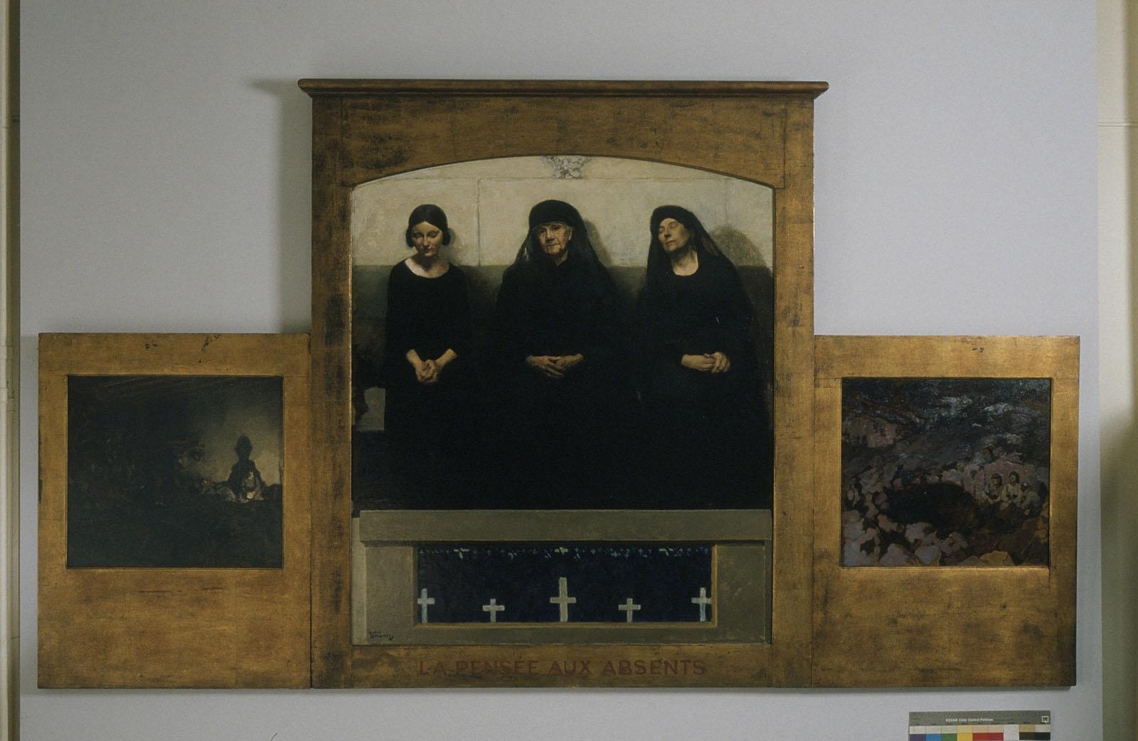 Une fois la Grande Guerre terminée, André Devambez concrétisa ainsi son projet : témoigner de la détresse psychologique du soldat tout autant que des civils restés à l'arrière, de la séparation, de l'isolement et de la solitude, sentiments qu'il avait dû lui-même éprouver. Il imagina un triptyque qui allait conférer à son œuvre un caractère presque sacré et lui donner le statut d'autel du souvenir.