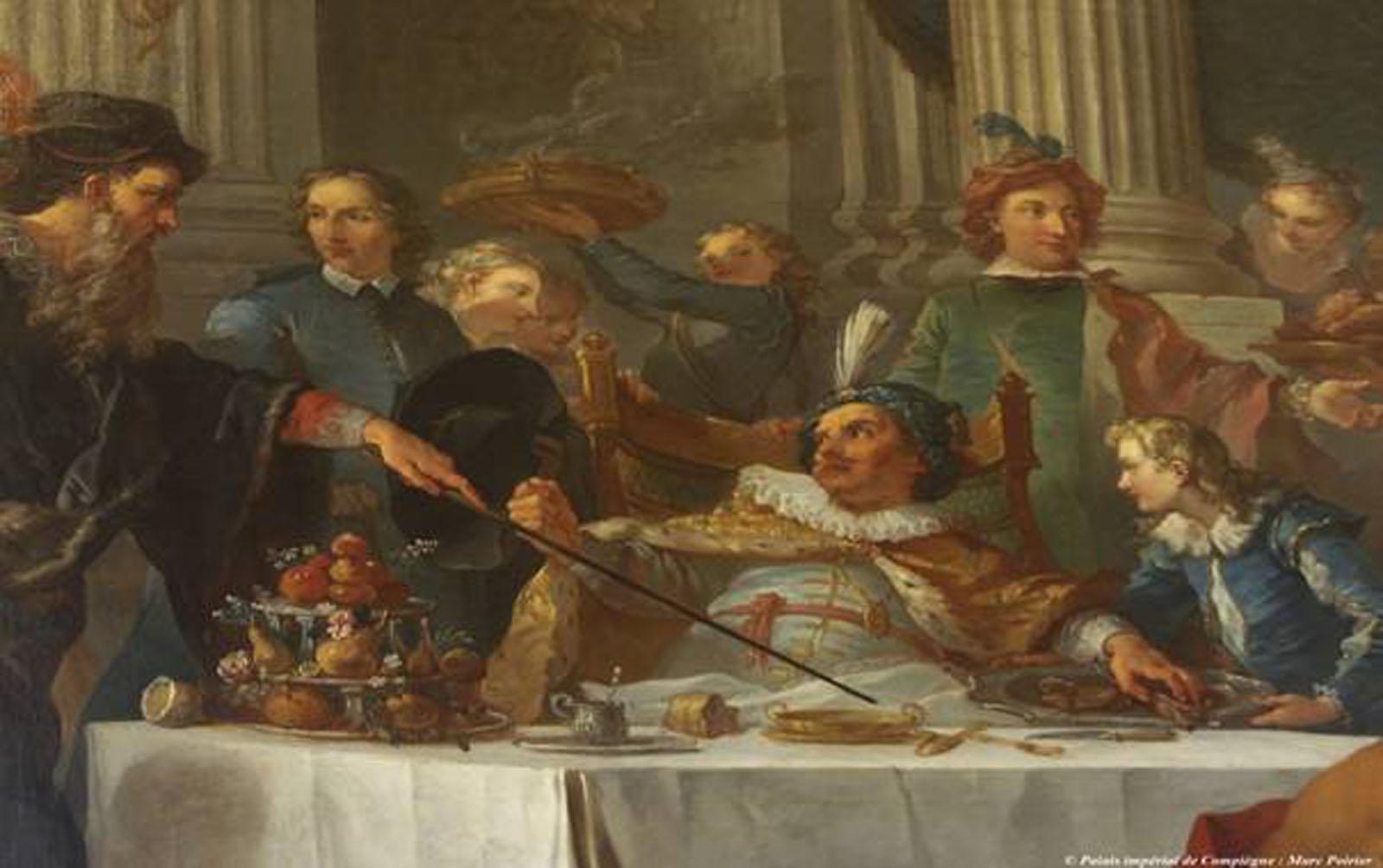 Dans cette série, Natoire met en avant le personnage du valet de Don Quichotte, Sancho Pansa et prend une certaine liberté de ton en mettant en évidence l'activité favorite du personnage : manger. Ainsi le Repas de Sancho relate les aventures de ce personnage qui, nommé gouverneur de l'île mythique de Barataria, veut prendre son premier repas sur ses nouvelles terres. Las, le médecin se présente à lui muni d'une baguette et chaque fois que Sancho veut se servir, le médecin l'abaisse. Aussitôt les valets retirent les plats au grand désarroi de Sancho mais pour le plus grand plaisir de ceux qui assistent à la scène.