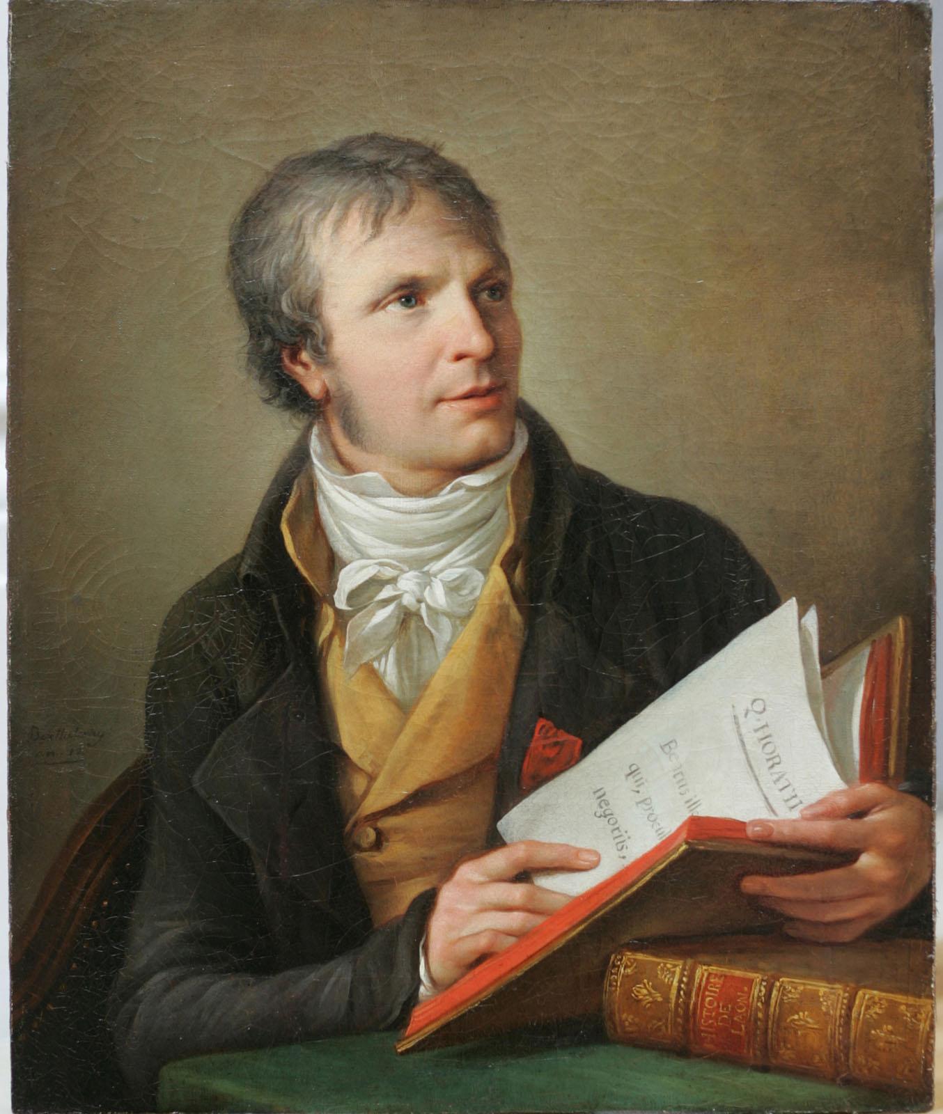 Devisme commande à son compatriote et ami Jean-Simon Berthélémy, professeur à l'Ecole des Beaux-arts de Paris, ce portrait d'homme publique lettré et érudit. Il vient d'être nommé chevalier de la Légion d'honneur. Le ruban rouge de la décoration éclate sur la redingote sombre du député mais la médaille est masquée par les Odes du poète latin Horace (65-8 avant J.-C.) qu'il feuillette en méditant et dont il publiera une traduction en vers français, en 1811. La première strophe, dont on peut lire le début, apparait comme une règle de vie pour ce sage de cinquante-quatre ans, pétri des idées de Voltaire : « Heureux celui qui soit, éloigné des affaires, de l'Age d'or suivre les doux penchans, et de l'art de prêter ignorant les mystères de ses aïeux cultive en paix les champs ».