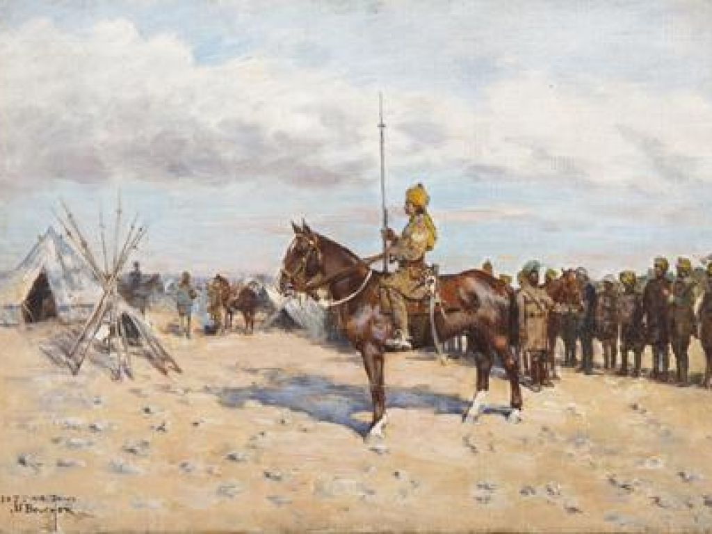 Joseph-Félix Bouchor (1853-1937) fut peintre aux armées à partir de 1916. Il est envoyé en mission dans la Somme jusque 1917 ; il y peint avec un grand réalisme les ruines et surtout les hommes, officiers et soldats anonymes. Ses portraits sont autant de témoignages précieux de la diversité des communautés combattantes. Bouchor est fait officier de la Légion d’honneur pour son œuvre militaire en 1921.