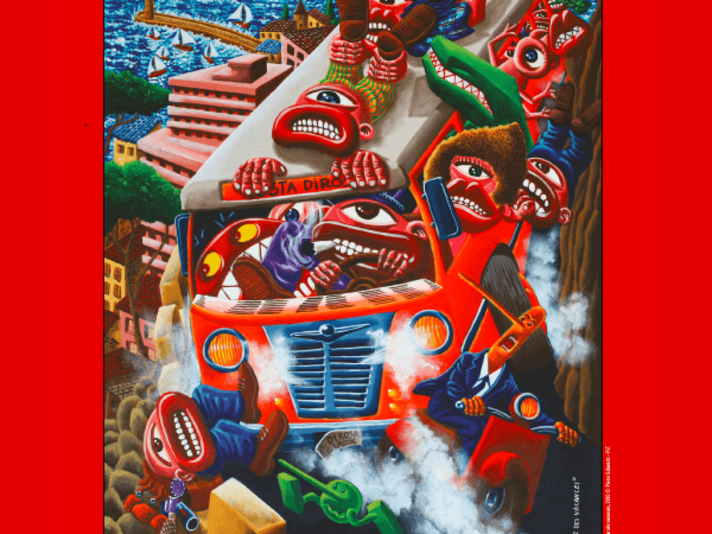 Artiste aux multiples facettes, Hervé Di Rosa cultive un langage pictural foisonnant de personnages extraordinaires, de couleurs franches et non dénué d’une pointe d’humour.