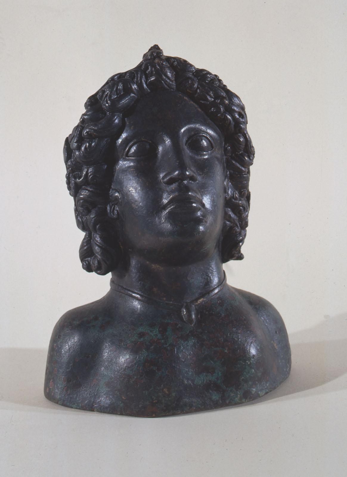 Le buste de Dury traduit cette réception de la beauté d'un éphèbe idéalisé selon les canons du classicisme grec. La coiffure, exubérante, révèle le nom de la divinité : la restauration de l'objet a fait surgir parmi l'écheveau des boucles, des grappes de raisin stylisées et feuilles très finement ciselées. Il s'agit de Bacchus adolescent. La présence autour du cou d'un pendentif ou bulla confirme cette attribution. Le sommet du buste est couronné par une sphère lisse qui occulte un anneau de suspension. Ce bronze, volumineux, pèse 14,8 kg, soit 48 livres romaines. Il s'agit d'un peson suspendu à un curseur d'une balance romaine. Le religieux est très présent dans la vie quotidienne des Gallo-romains comme le montre cet objet usuel de grande qualité.