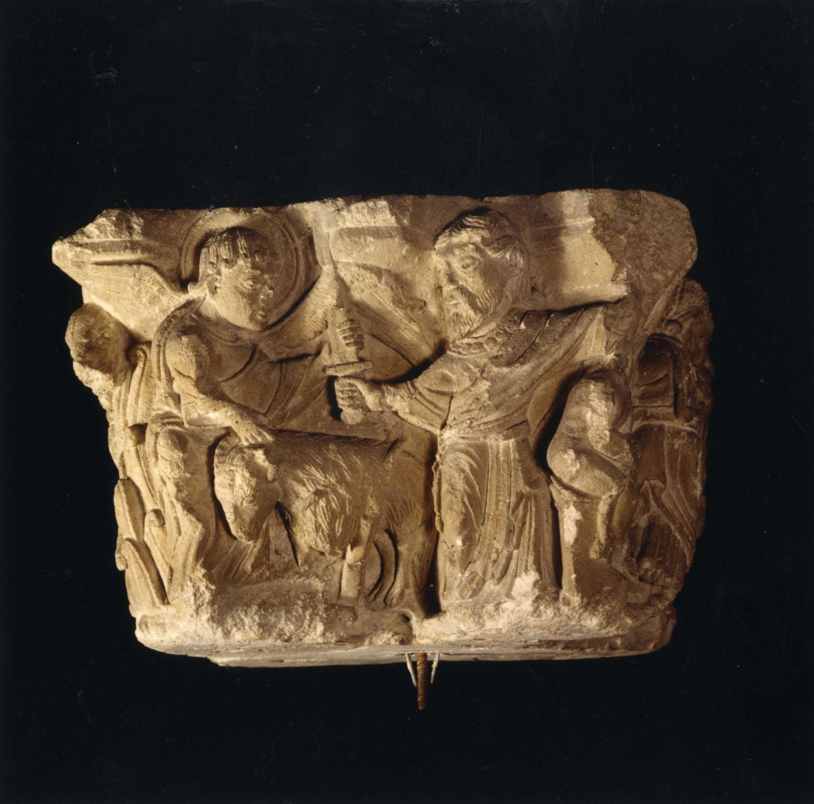 Les chapiteaux figurés et historiés restent la manifestation la plus vivante de l'art roman. Vers le milieu du XIIe siècle, une nouvelle conception spatiale s'affirme, les personnages se libèrent des contraintes de la corbeille, la scène s'épanouit sans contrainte. Cette conception simplificatrice du cadre est visible sur ce chapiteau au relief précis et vigoureux.