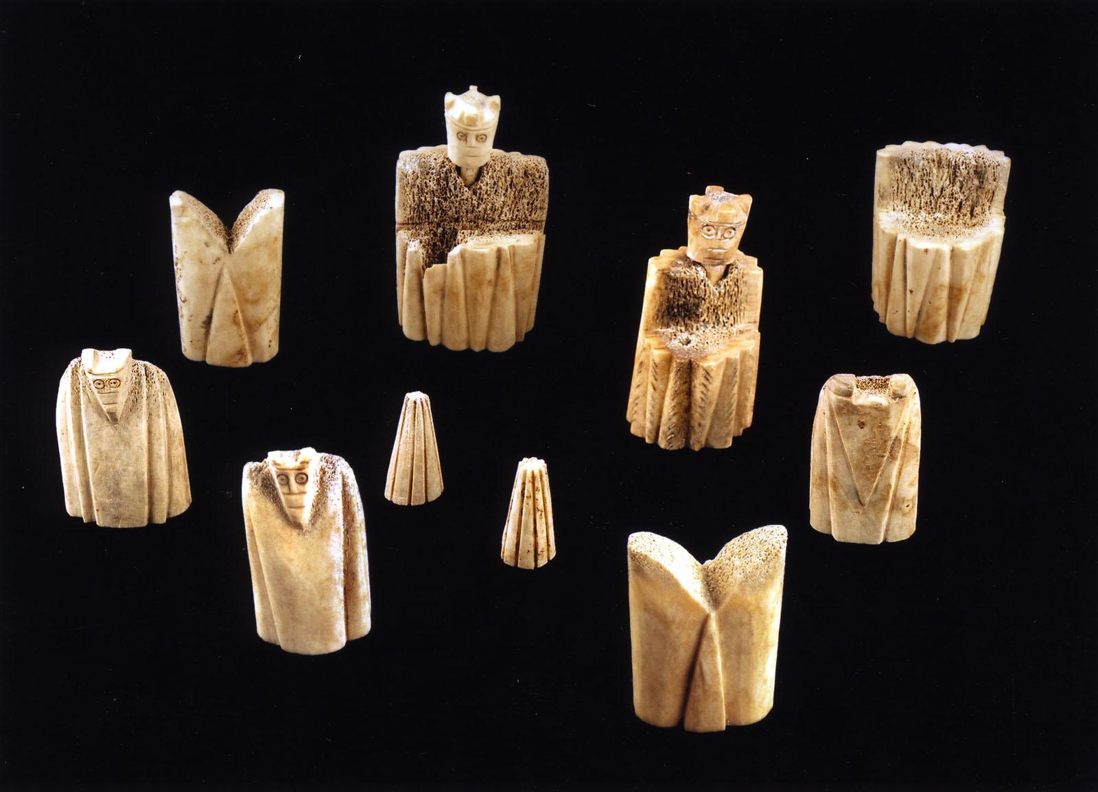Le matériau utilisé, la technique de fabrication et le style présentent une grande homogénéité. Les pièces ont été produites dans les différentes parties d'une ramure de bois de cerf. Rois, reine, cavaliers et tours sont taillés dans la perche, ou merrain du bois de cerf, tandis que les pions ont été fabriqués en utilisant les pointes d'andouillers. Les figures sont d'un seul bloc, à l'exception des rois et sans doute de la reine dont les têtes schématiques sont fixées au corps par une tige insérée dans la masse spongieuse. Le vêtement des personnages est suggéré par des cannelures verticales. Des hachures présentes par endroits sur une partie seulement des figurines devaient permettre de distinguer les deux camps. Ces différents éléments sont donc à priori l'œuvre d'un même artisan local. Le style relativement abstrait reste proche de celui des jeux d'échecs arabes. Originaire d'Inde, ce jeu est introduit en Europe dans la deuxième moitié du Xe siècle via le monde arabo-musulman.