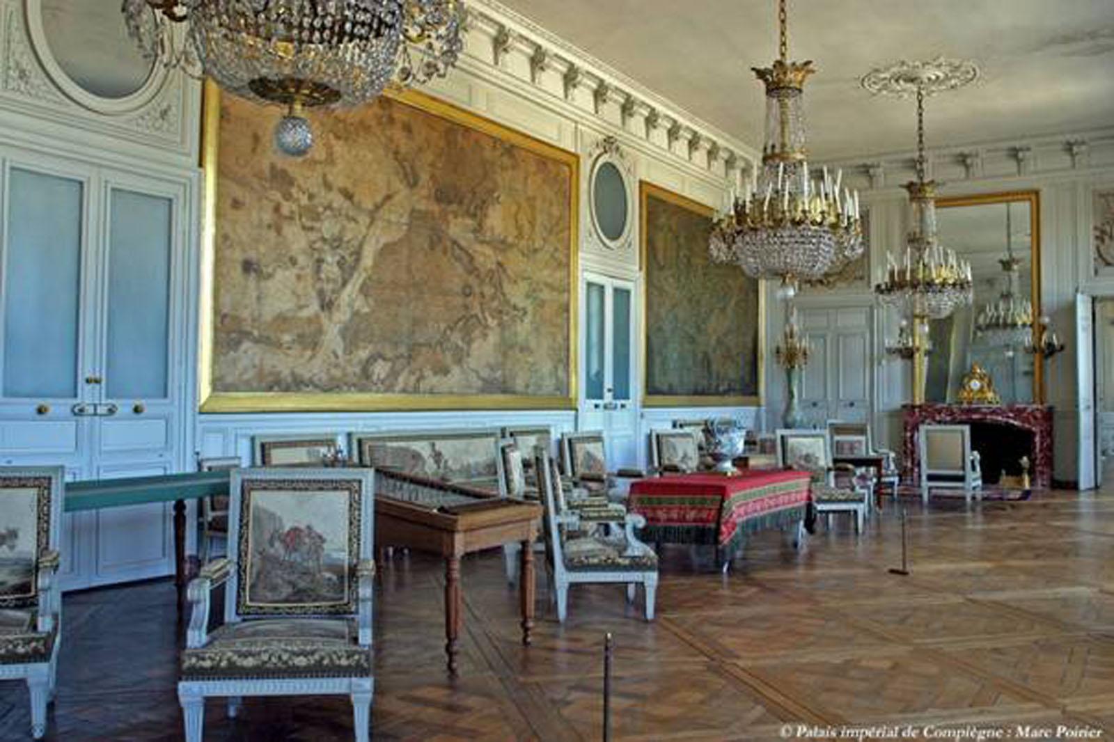 Aujourd'hui le Salon des Cartes - du nom des toiles peintes de Pierre-Denis Martin représentant les cartes de la forêt de Compiègne, datées de 1738-1739 – est présenté dans son état Second Empire.