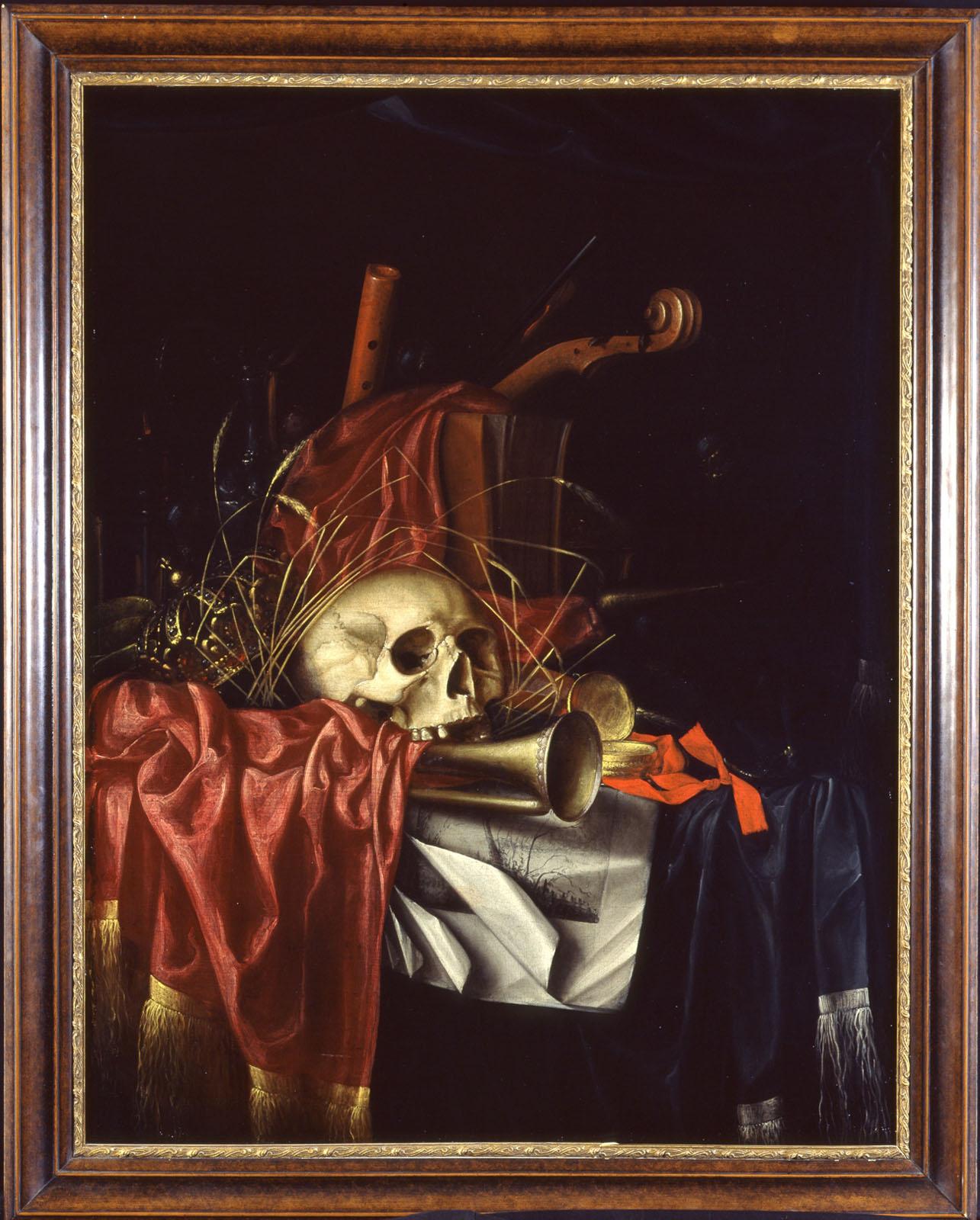 Cette toile représente une vanité. C'est un genre particulier de nature morte à implication philosophique dans laquelle les objets représentatifs des richesses de la nature et des activités humaines sont juxtaposés à des éléments évocateurs du triomphe de la mort.